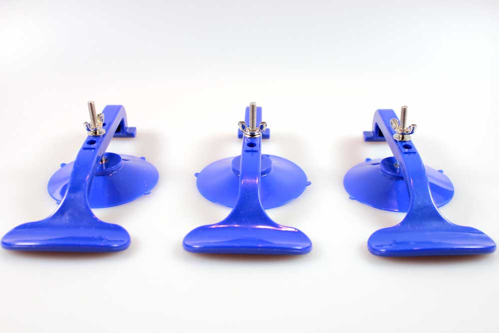Suction and mounting lifter made of sturdy plastic and high-grade rubber suction cups. For mounting and pressing down trim moldings, window frames, ornaments, etc. Individual positioning capabilities. Contact pressure adjustable using thumb screw. Standard tool for paint shops.